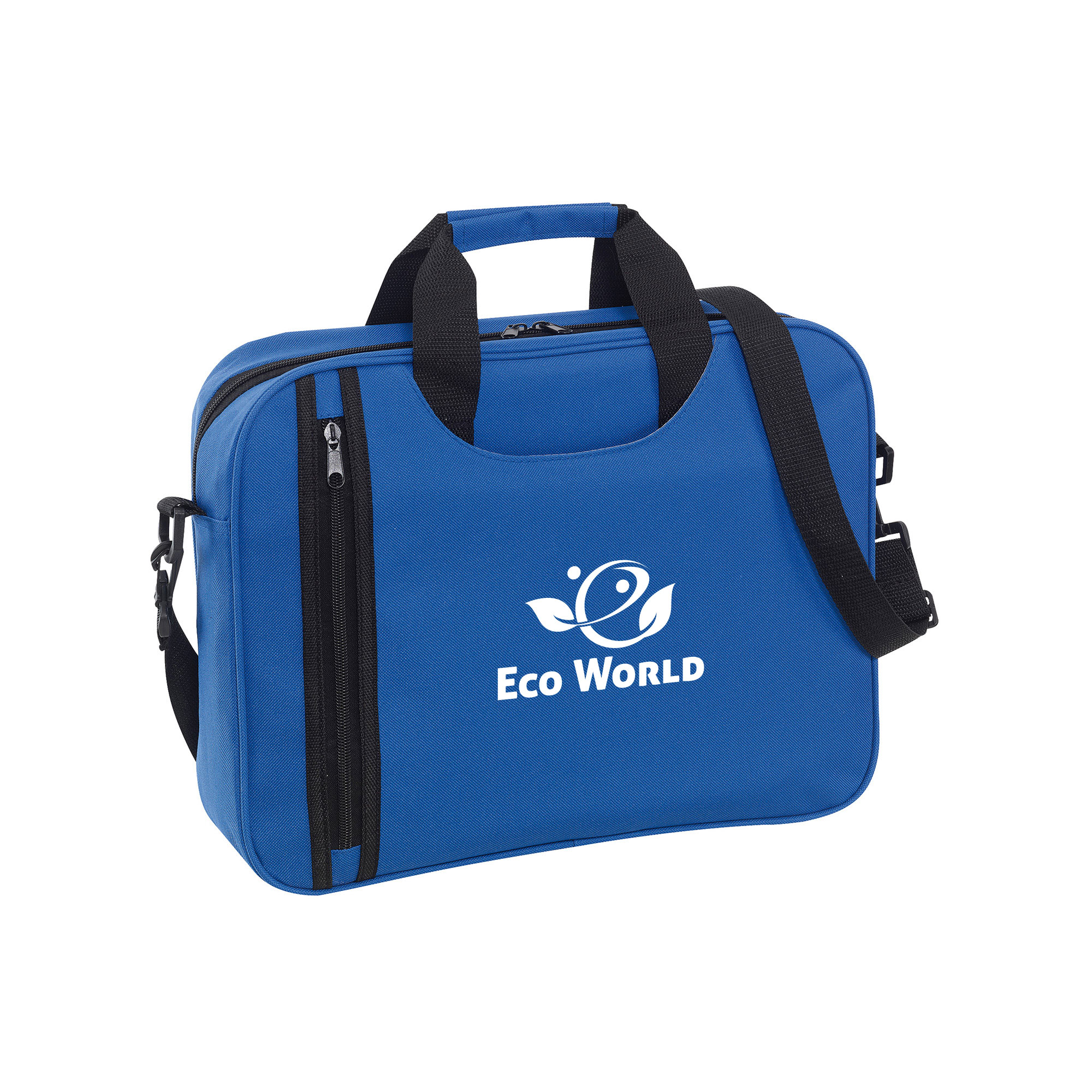 38 x 29 x 9 cm. Capacidad: 9 litros. Polyester 600D. Bolsillo frontal con cierre. Un compartimento principal. Correa regulable y desmontable. Hebillas plásticas.