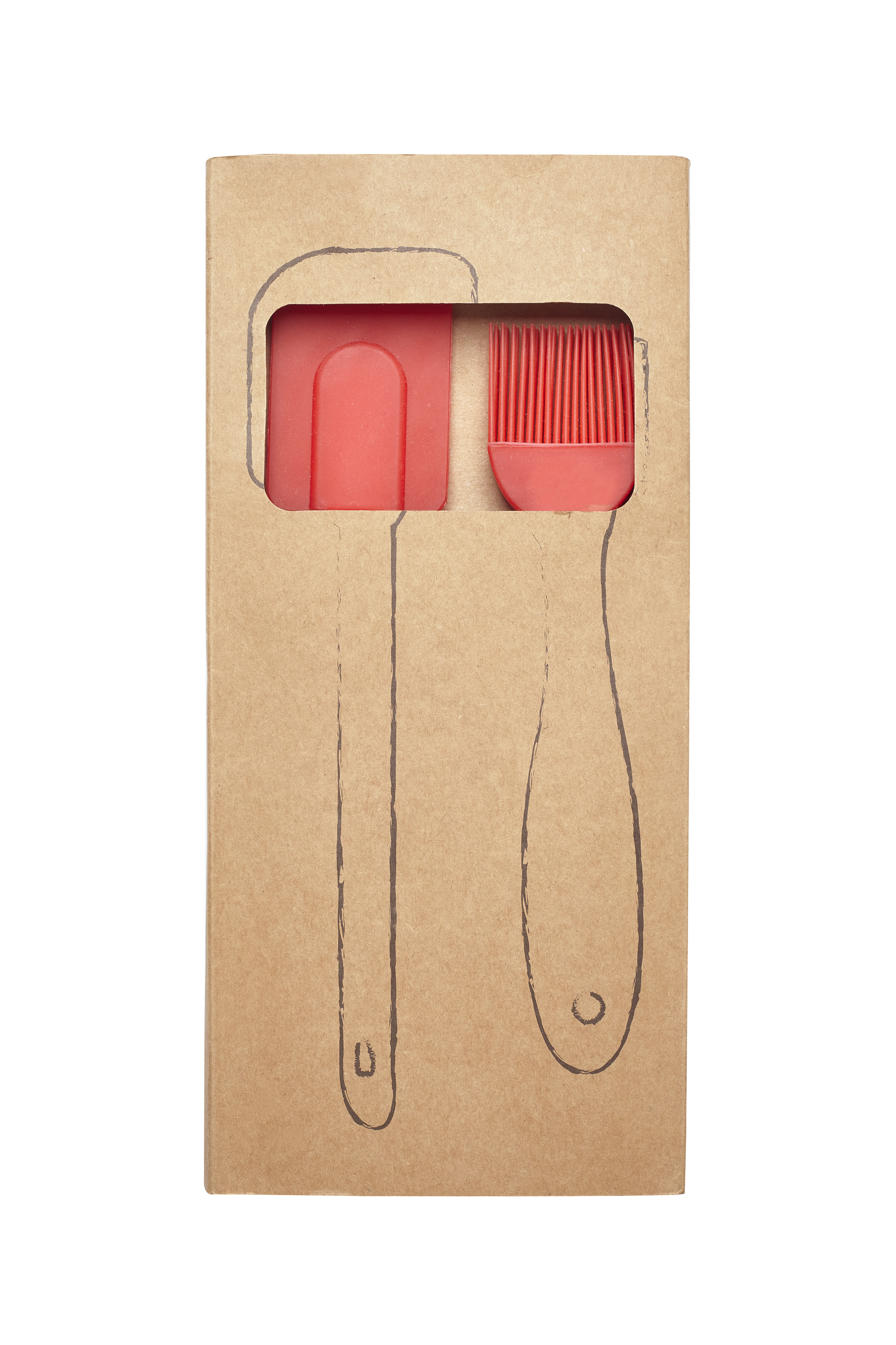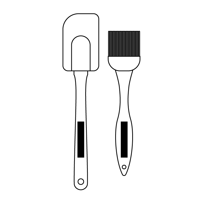 Fabricado en Silicona y plástico sus medidas son 25 cm (espátula) y 21,5 cm (pincel). Descripción: Set de cocina de espátula y pincel.