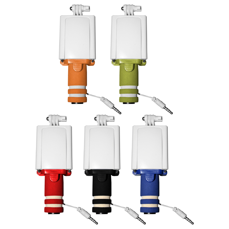 Cerrado 15 cm. Extendido 60 cm. Plástico y EVA. Palo extensible para selfie. Cuenta con botón de disparo. Funciona con Android v. 4,2 o mayor, no necesita instalar aplicaciones extras. Donde se coloca el celular tiene una amplia placa plástica que permite aplicar el logo. Incluye cable de conexión. Presentación en caja de regalo.