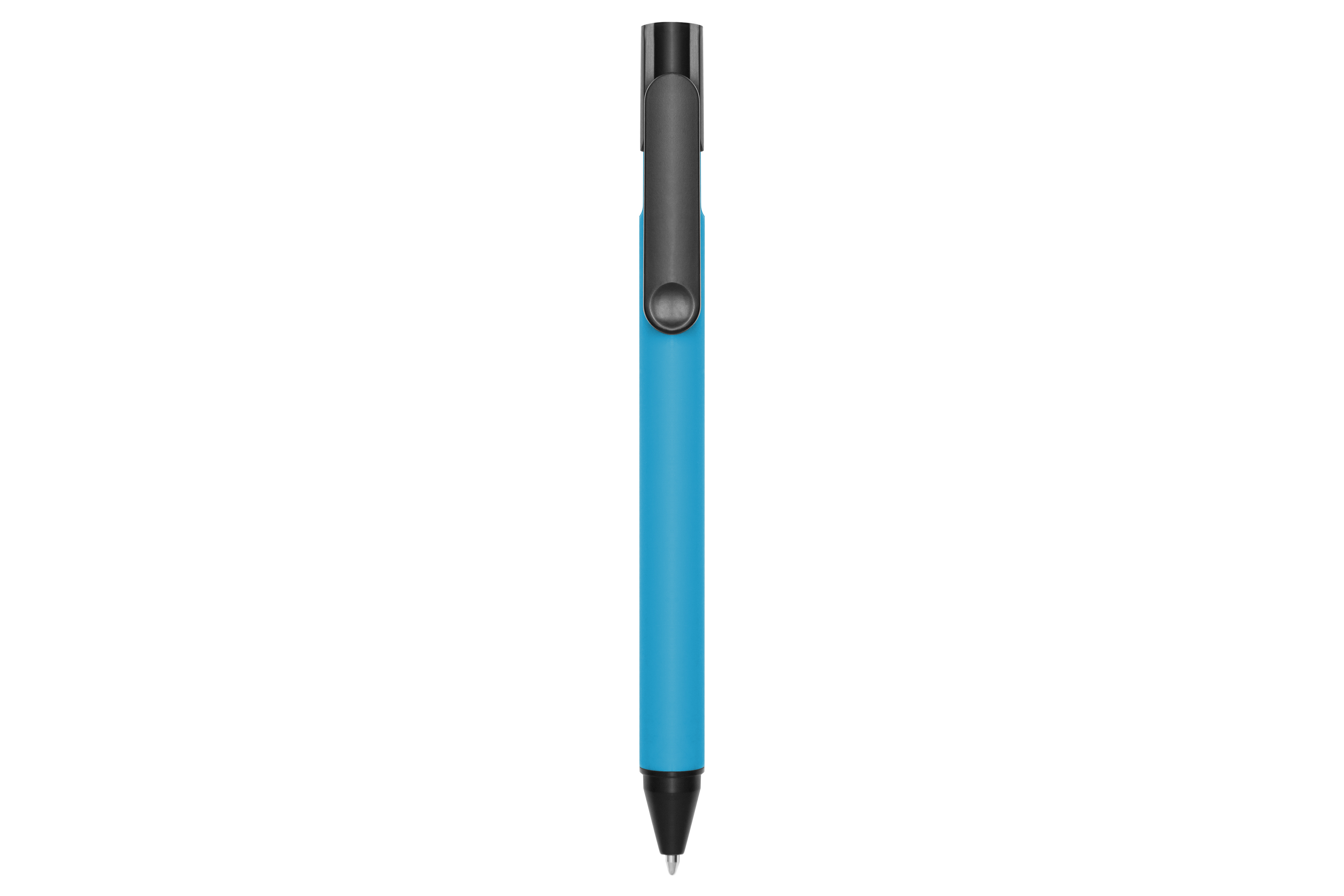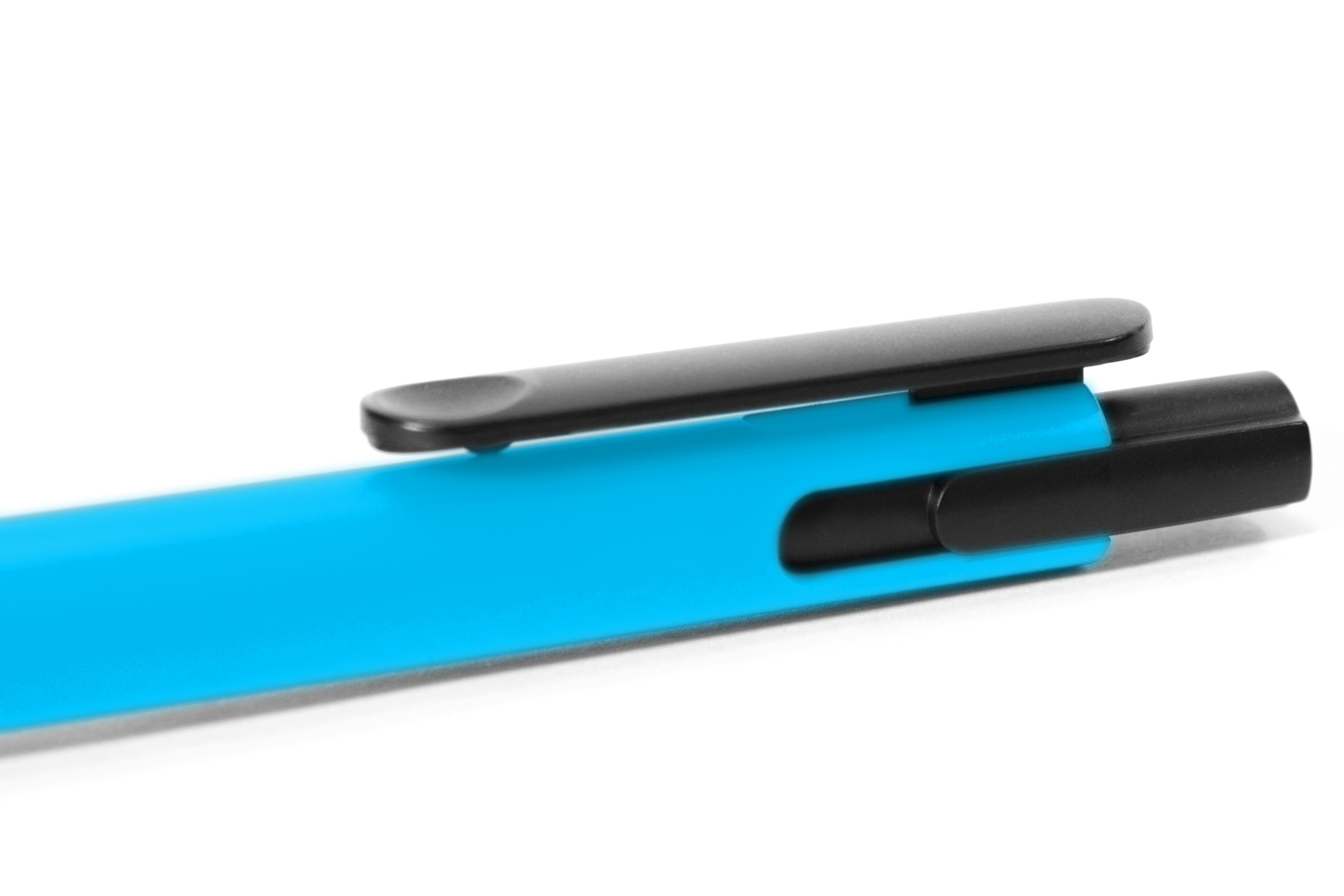 Plástico. Bolígrafo con pulsador. Cuerpo plástico de color. Pulsador, clip y puntera plásticos color negro. Detalle en el clip. Tinta negra.