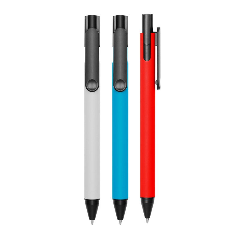 Plástico. Bolígrafo con pulsador. Cuerpo plástico de color. Pulsador, clip y puntera plásticos color negro. Detalle en el clip. Tinta negra.