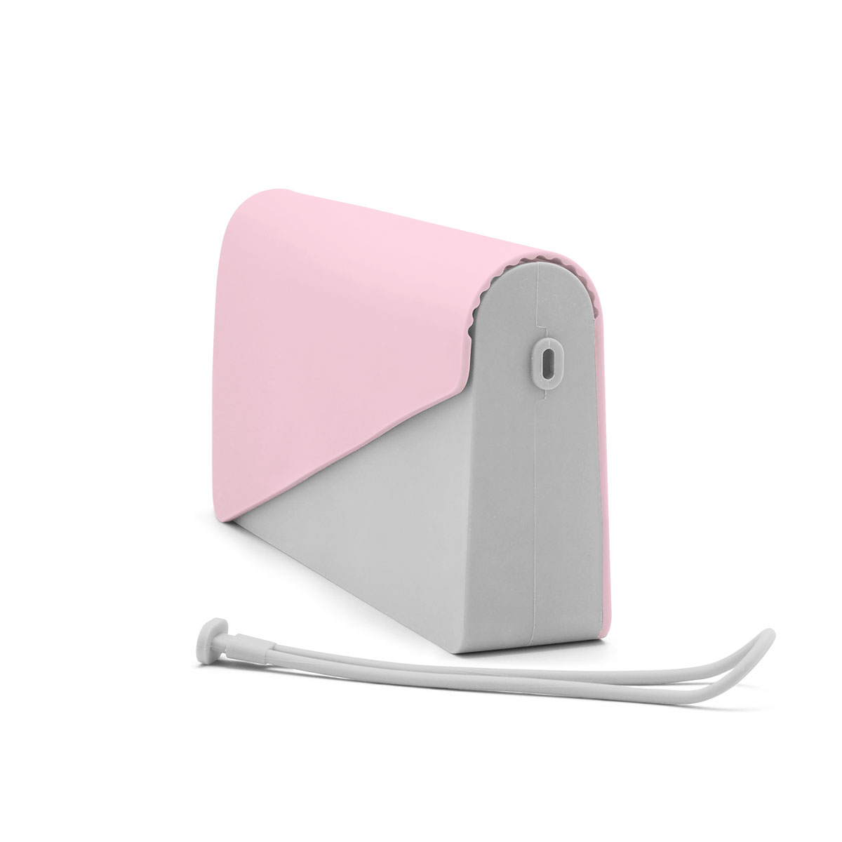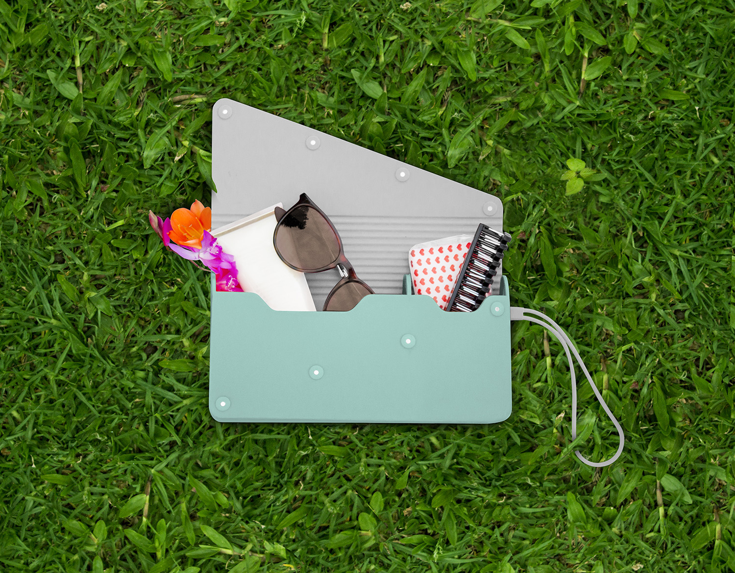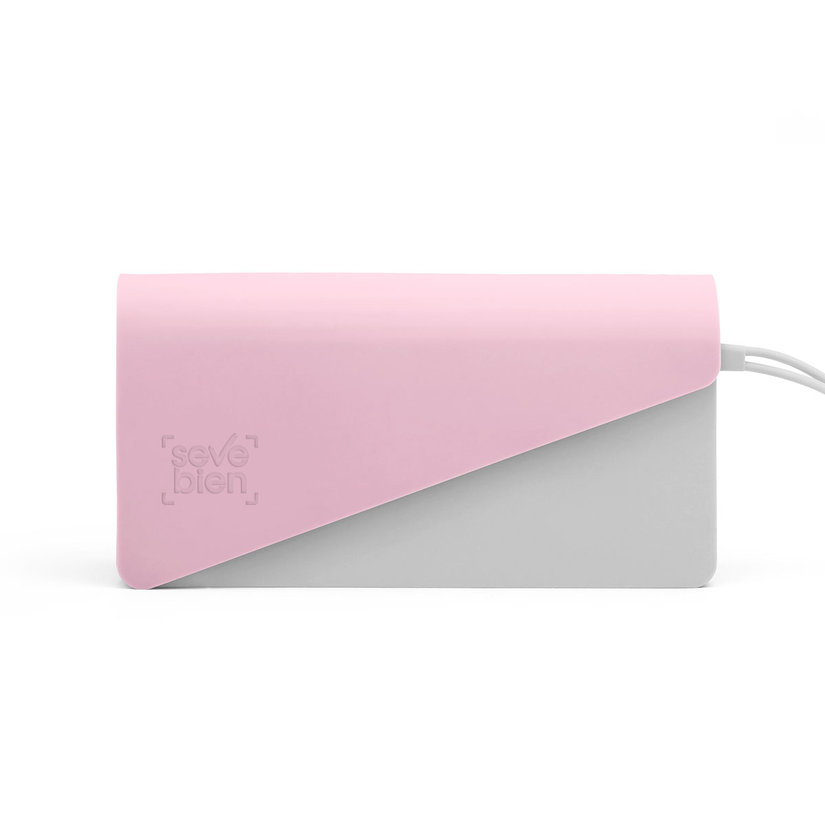 23,5 x 12 x 6,4 cm. Silicona. Sobre de silicona con solapa imantada y correa desmontable. Su interior tiene 3 compartimentos para guardar de todo. Presentación en caja de regalo.