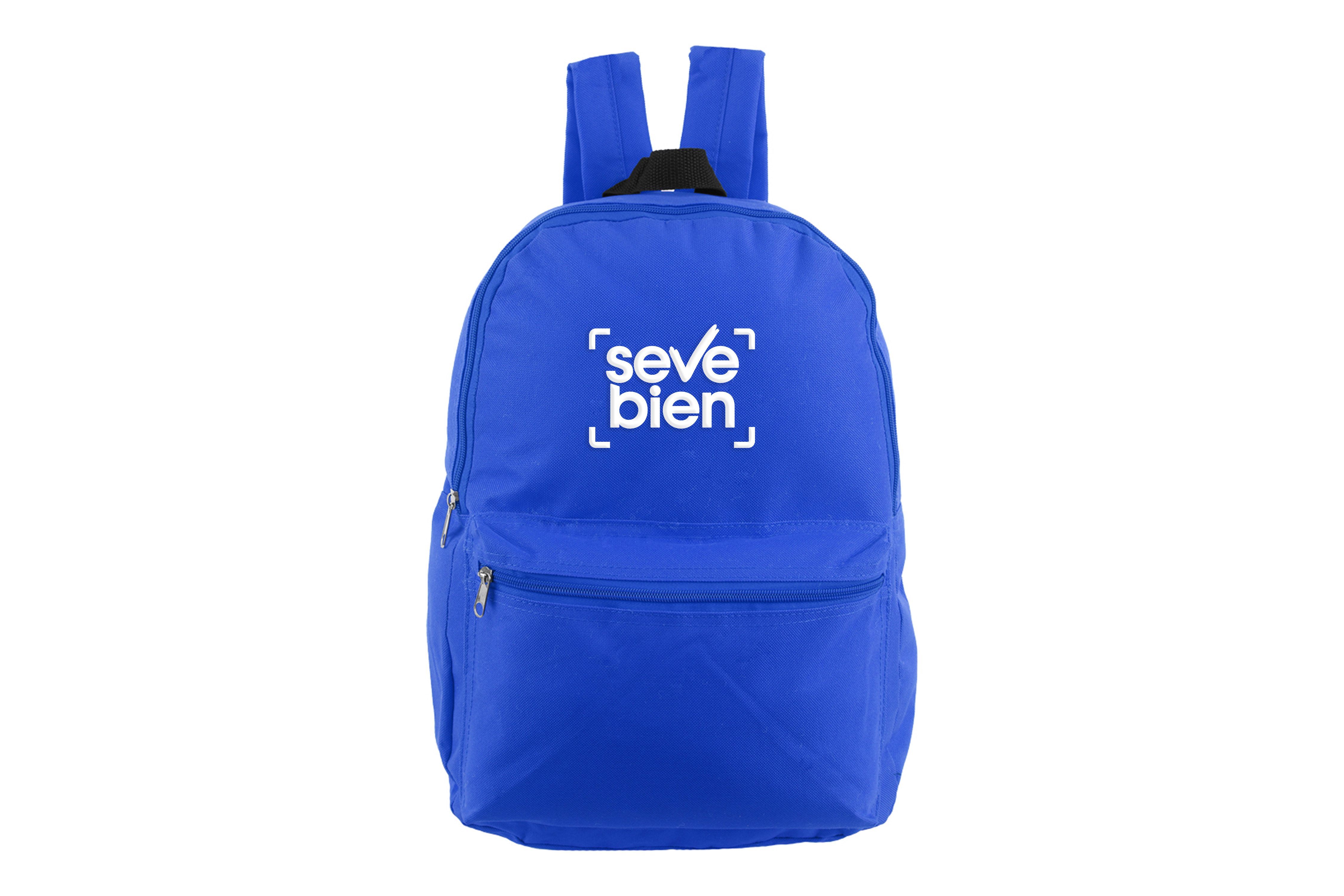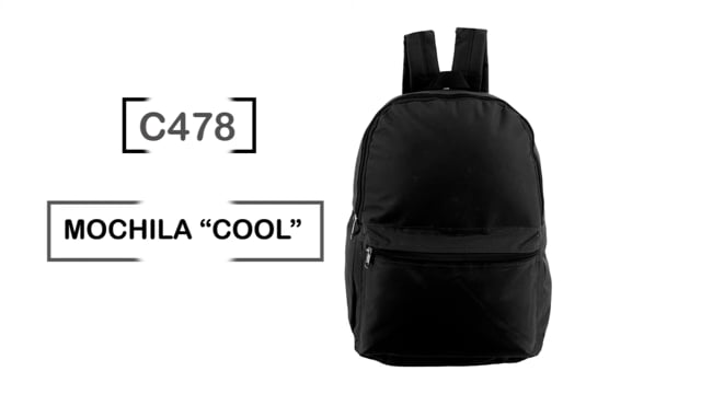 40 x 27 x 11,5 cm. Capacidad 10 litros. Poliéster 600D. Mochila mediana, con bolsillo frontal con cierre.