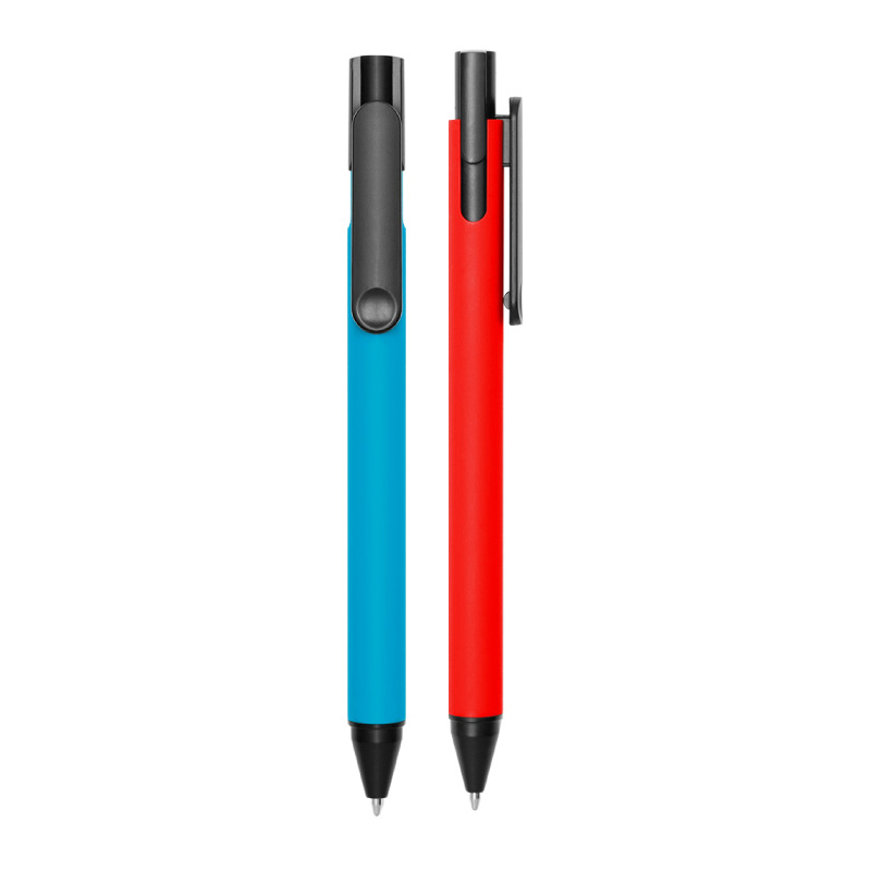 Plástico. Bolígrafo con pulsador. Cuerpo plástico de color. Pulsador, clip y puntera plásticos color negro. Detalle en el clip. Tinta negra.