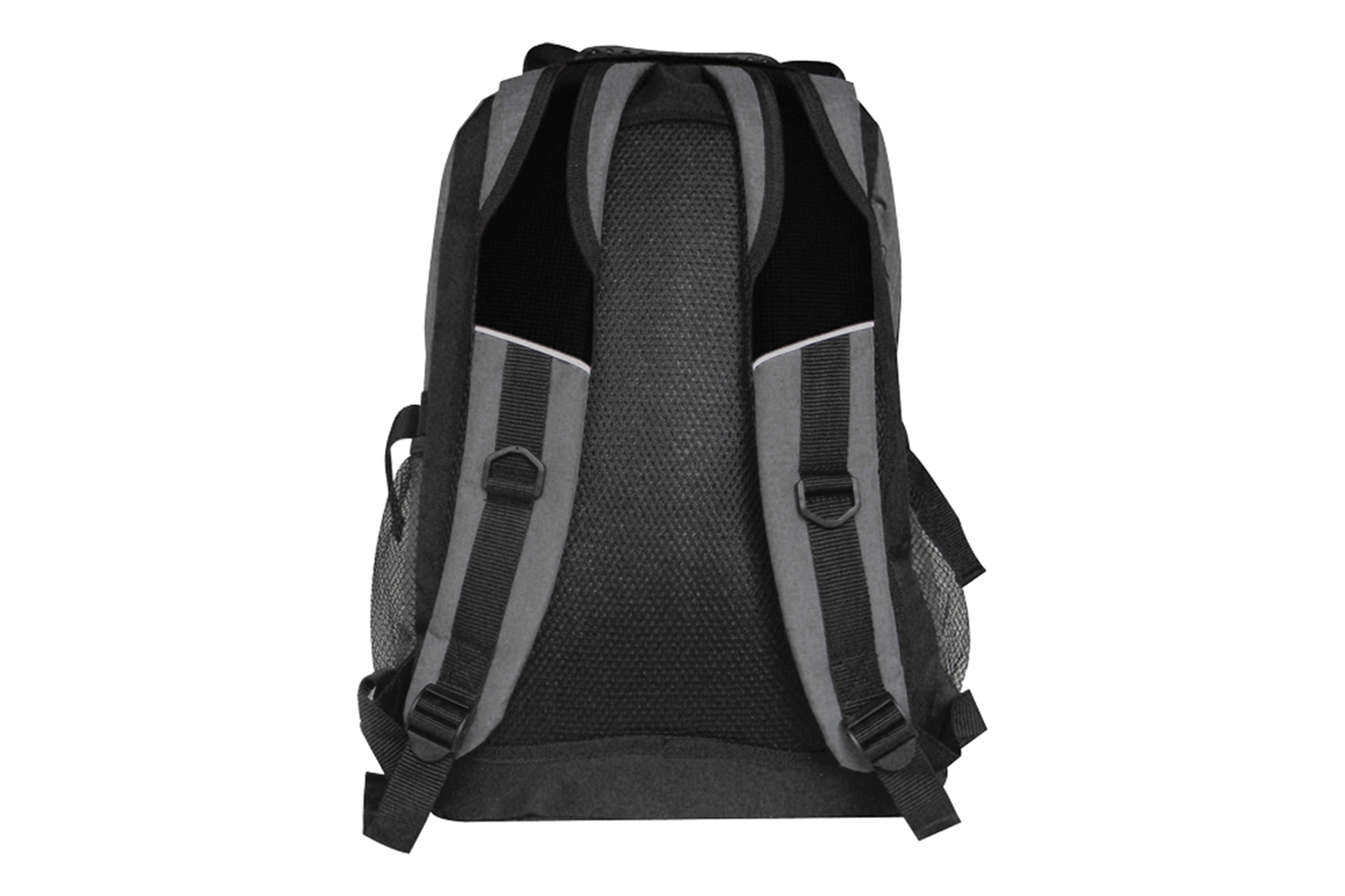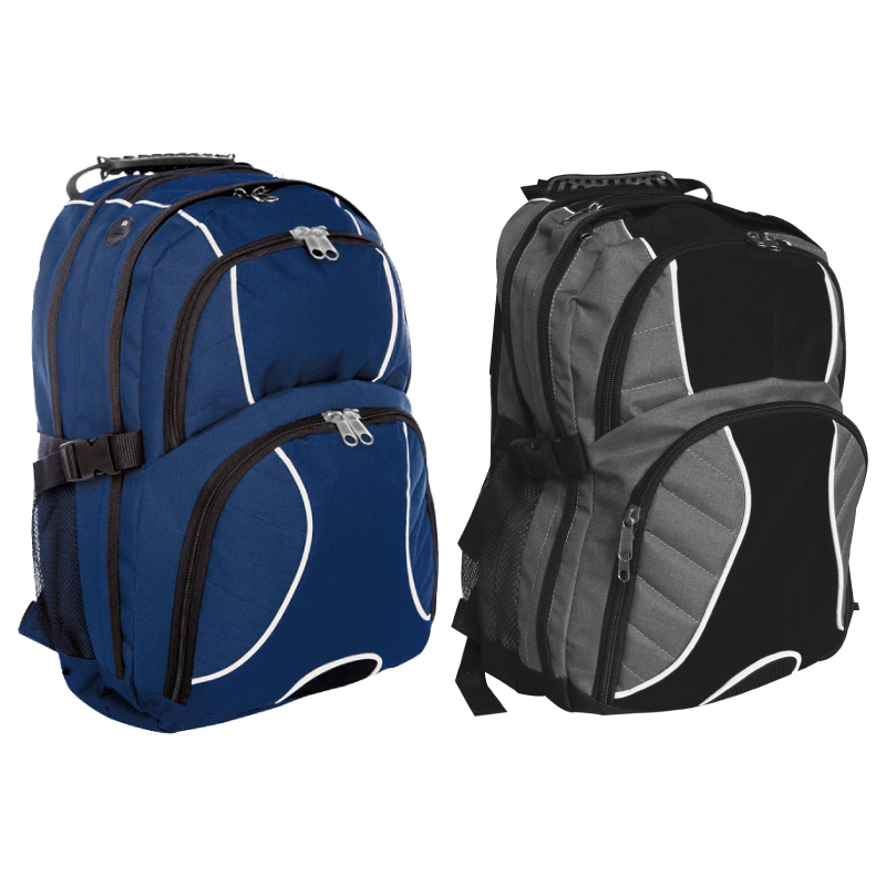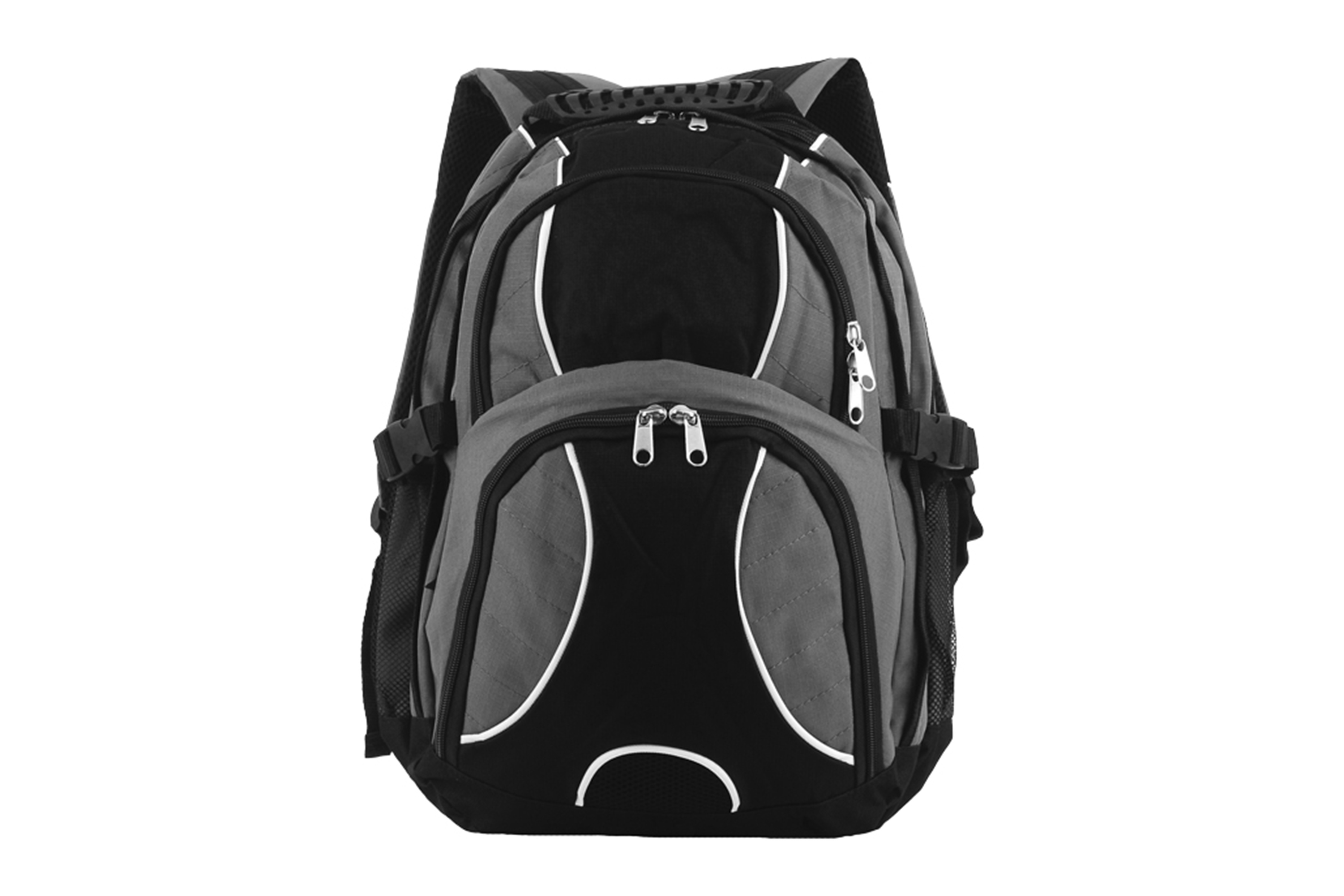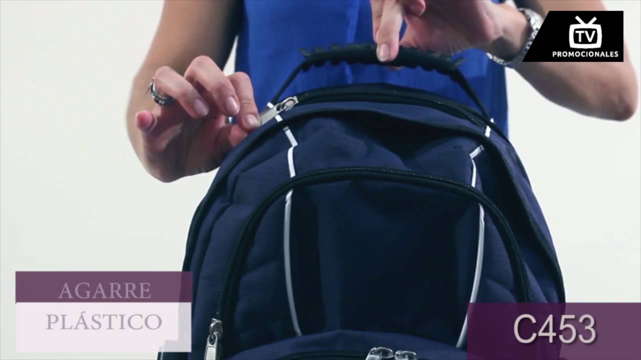 32 x 44 x 14,5 cm. Capacidad 18 litros aprox. Polyester 600D. 2 compartimentos principales con cierre. 1 bolsillo frontal externo con cierre. Correas regulables. Acolchado. Fácil bordado. Porta notebook de hasta 15 pulgadas. Deslizadores de cierre en textil. Interior dividido.