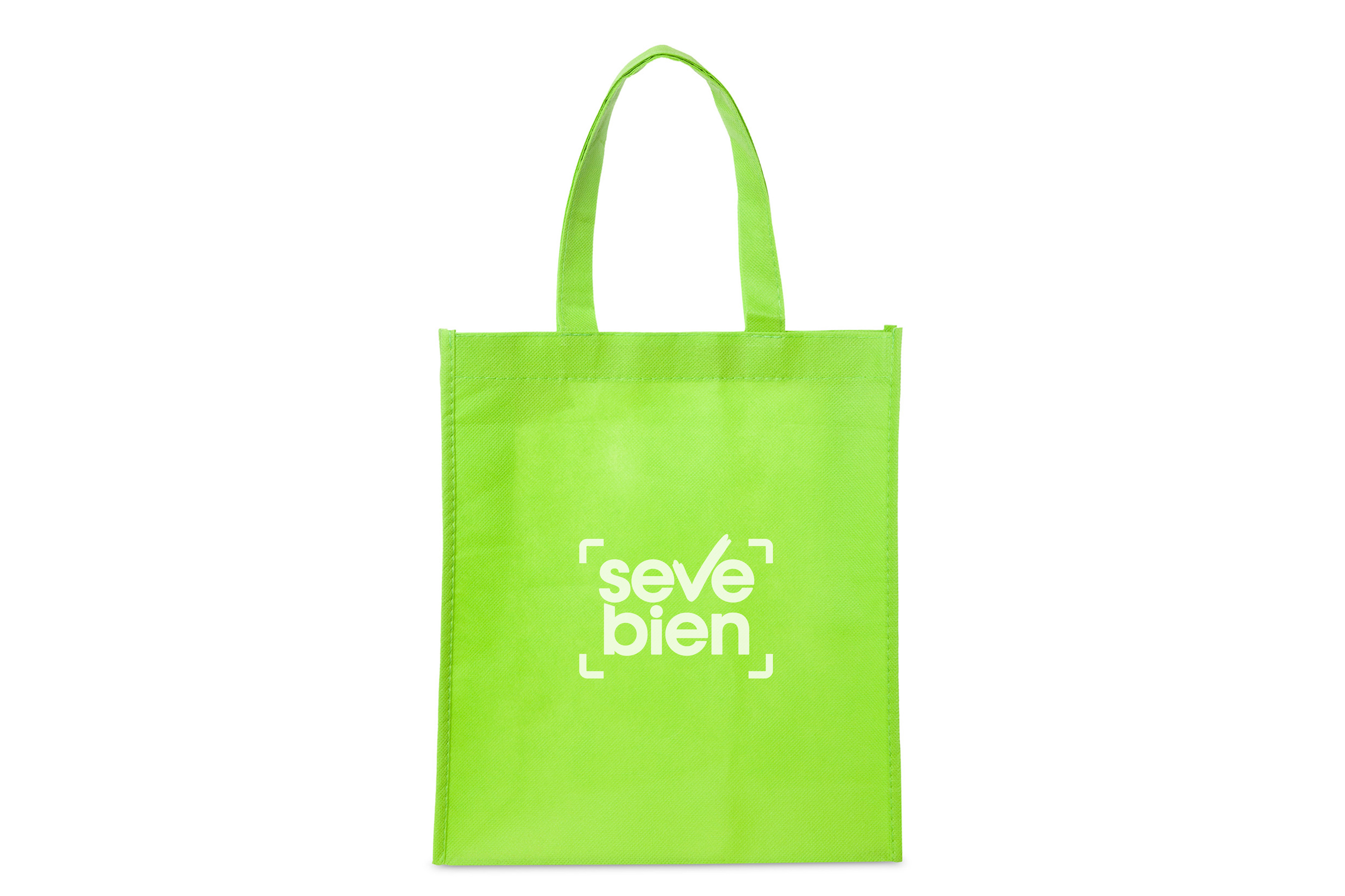 40 x 30 x 10 cm. Non-woven. Bolsa para compras con manijas.