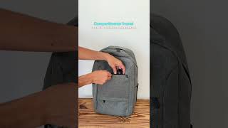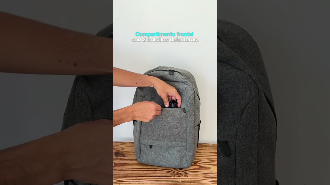 Mochila urbana portanotebook de hasta 16 pulgadas. Compartimento principal con cierre y bolsillo portanotebook y tablet de hasta 11 pulgadas, además bolsillos organizadores de accesorios. Compartimento frontal con 2 bolsillos delanteros. 2 bolsillos laterales, mitad de tela y mitad de malla elástica. Asa color negro. Interior forrado el poliéster gris claro. Correas ajustables y espalda acolchadas. Tira para sujetar la mochila en la manija extensible de un equipaje de mano. Tiradores de cierre metálicos.