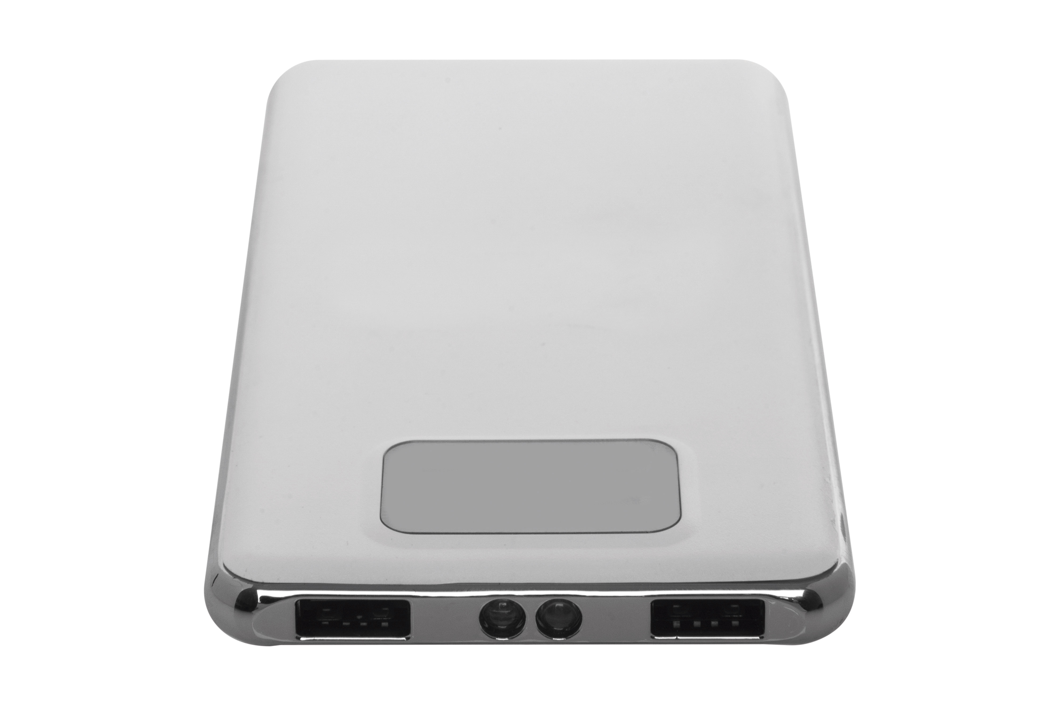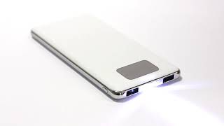 15 x 8 x 1 cm. Capacidad 8000 MAH Plástico. Batería portátil para celular y diferentes dispositivos que contengan el mismo puerto de entrada. Dos puertos USB que permite conectar dos dispositivos simultáneamente. Pantalla digital que indica el porcentaje de carga. Presionando dos veces el botón de encendido se encienda la linterna.