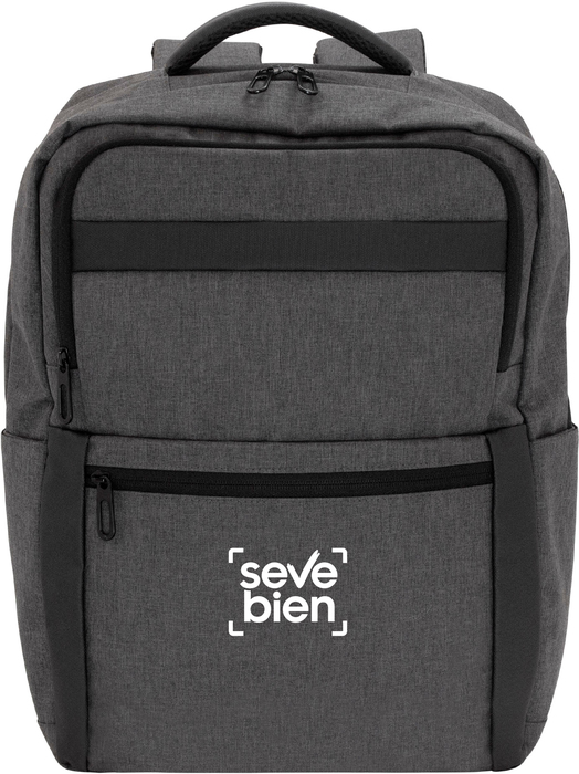 Mochila portanotebook de hasta 17 pulgadas. Cuenta con dos compartimentos, el compartimento principal con bolsillo acolchado para la notebook. Frente con bolsillo horizontal con cierre y dos bolsillos laterales. Asa superior reforzada, correas ajustables y respaldo con red que permite ventilación, todos acolchados. Tiradores de cierres metálicos color negro.