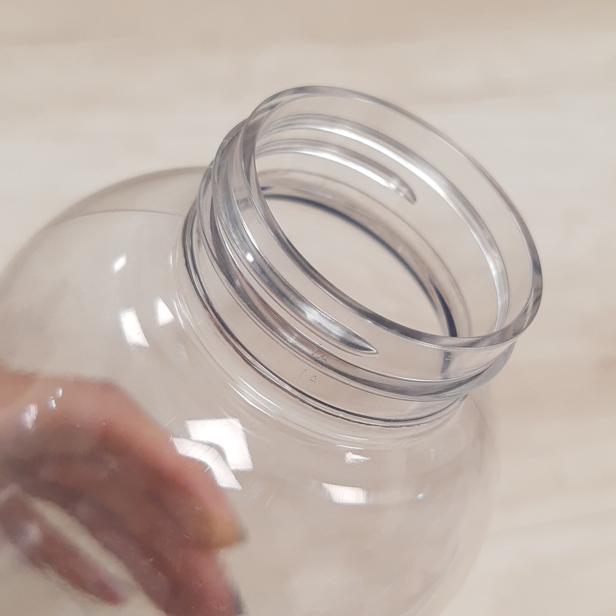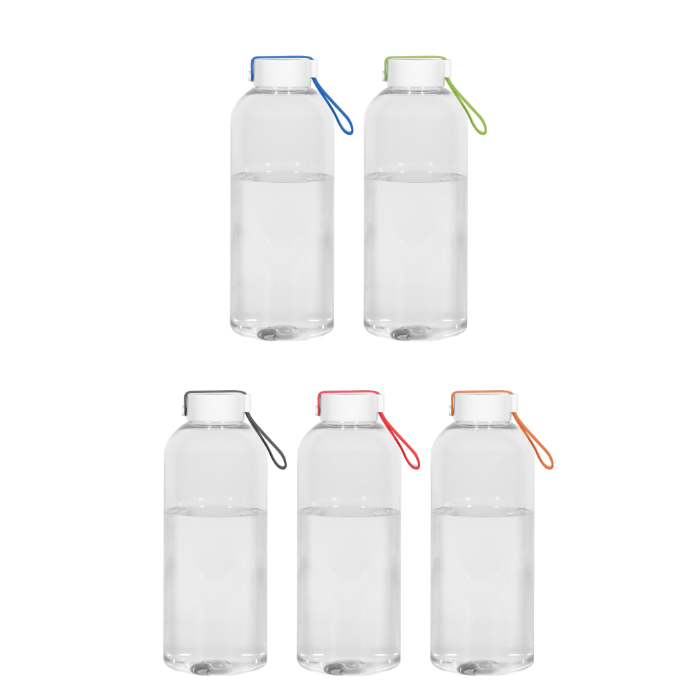 Ø 8 x 20,5 cm. Capacidad 810 ml. Peso de la botella: 61 gramos - Peso de la tapa: 23 gramos. Plástico. Cuerpo traslucido.