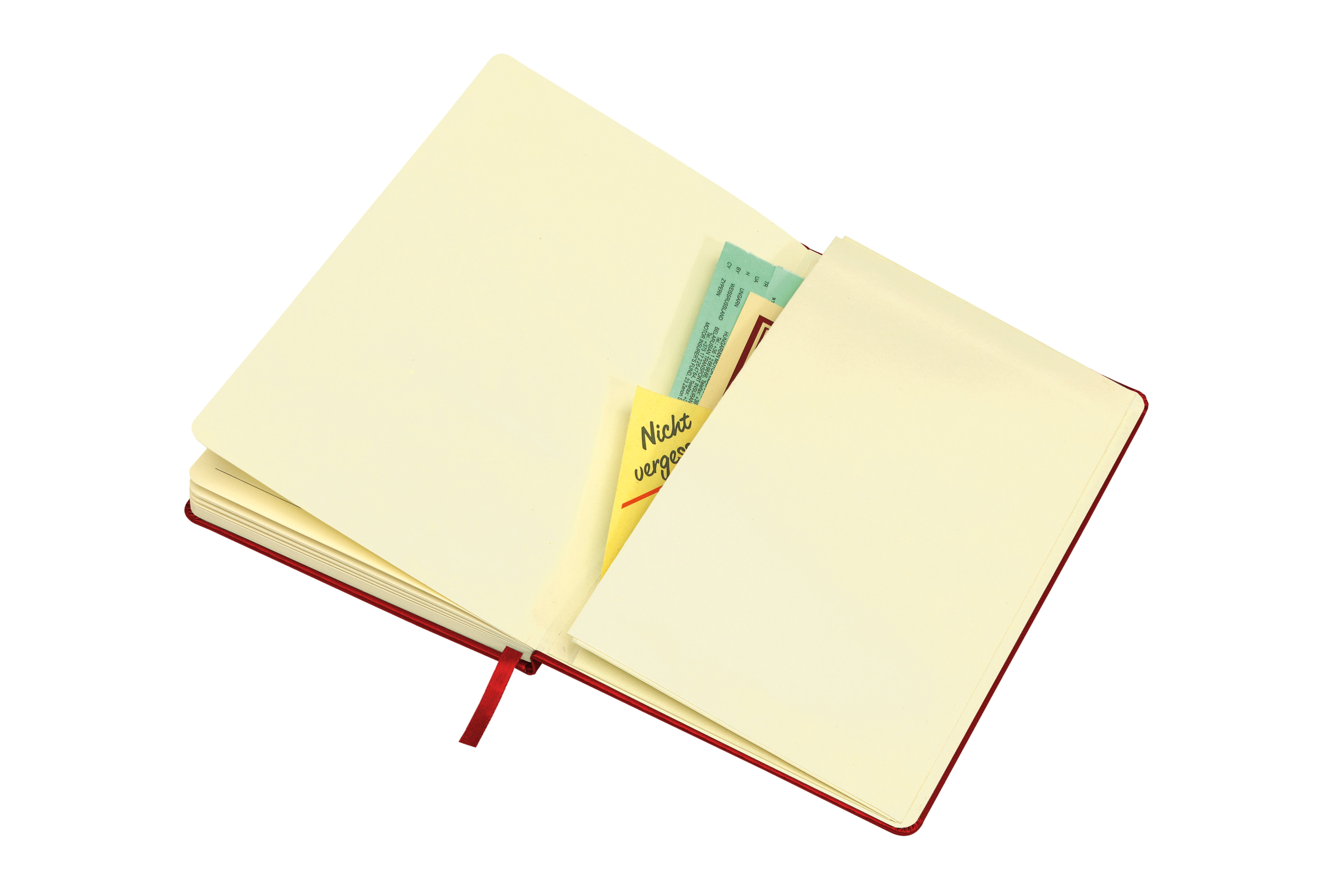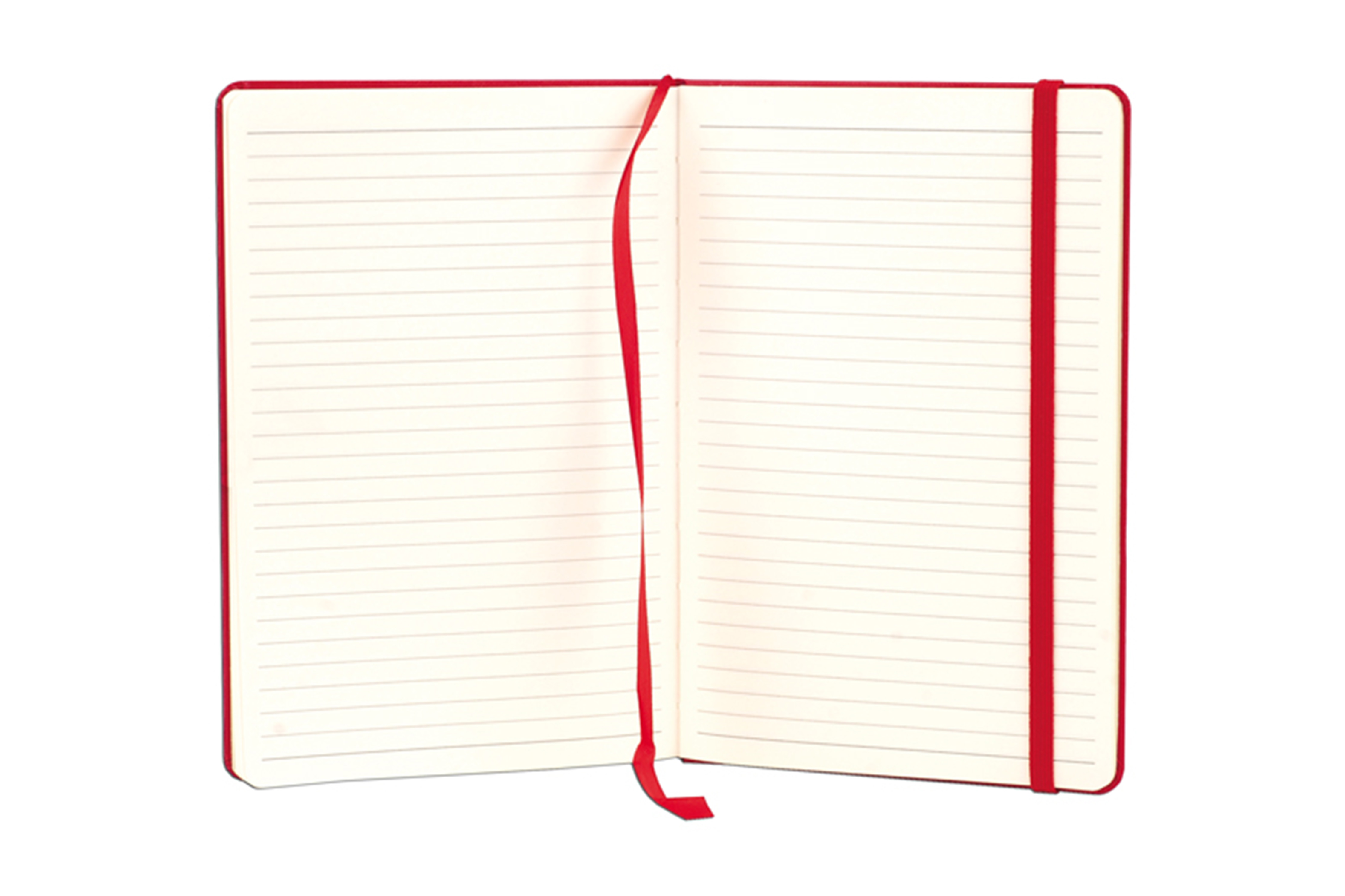 21 x 14 x 1,5 cm Cartón recubierto en poliuretano. 80 hojas rayadas.160 páginas.Separador de hojas en tela. Cierre con banda elástica. Bolsillo interior en la parte trasera de la libreta.