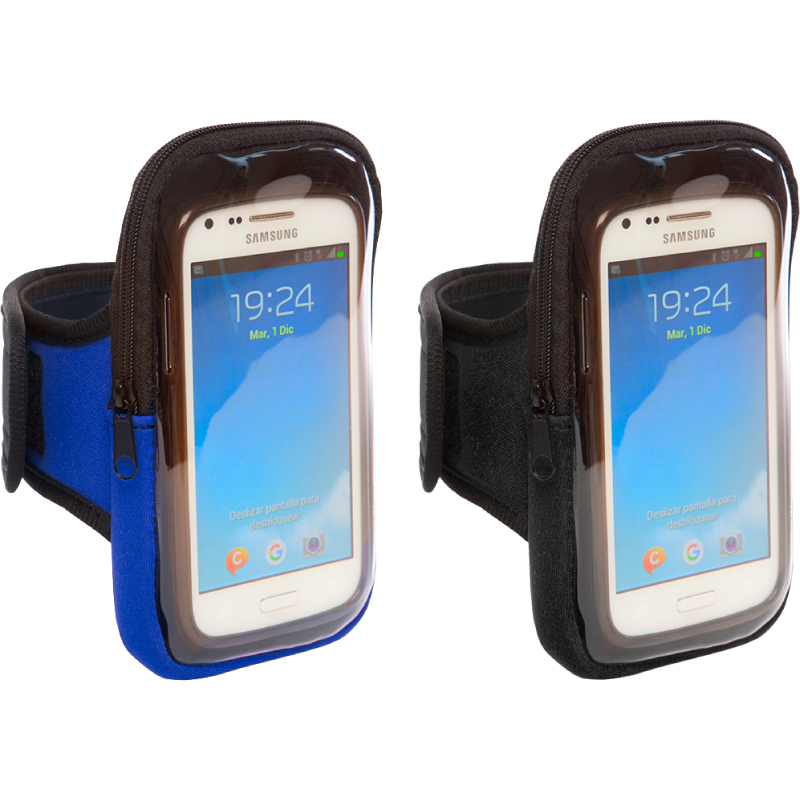 42,5 x 16,1 x 8.5 Neoprene. Brazalete para celulares, malla ajustable con cierre de velcro Posee una ventana transparente de PVC con cierre.