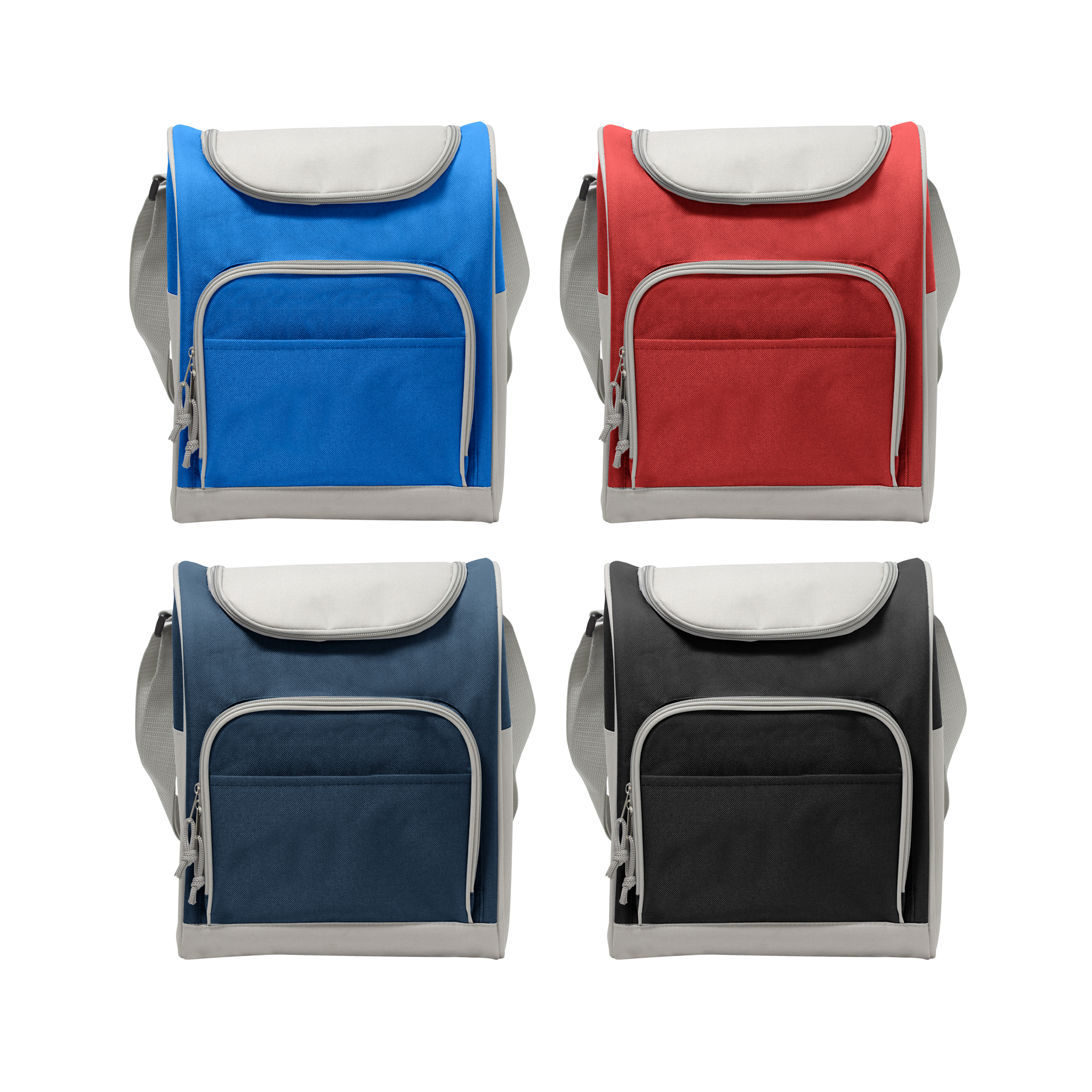 34 x 25 x 19 cm. Capacidad 16l. Polyester 600D. Bolso térmico. Interior totalmente recubierto de aluminio. Bolsillo frontal, correa extensible y cierres metálicos con tira cierres de cordón.