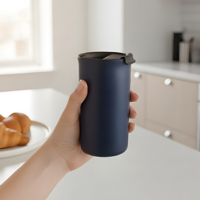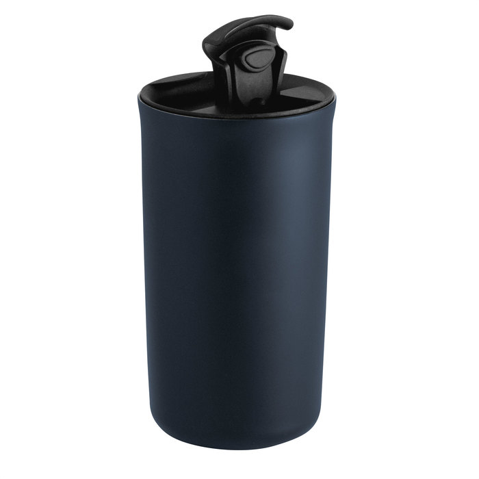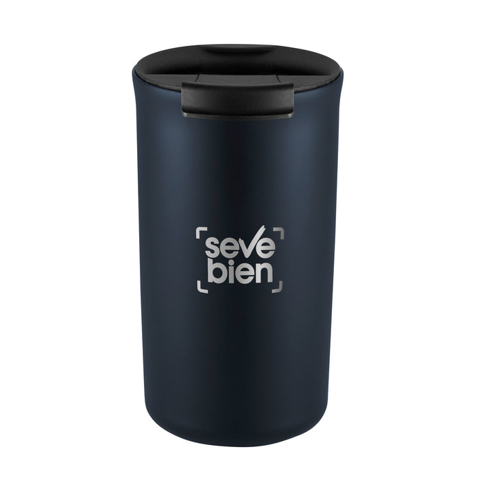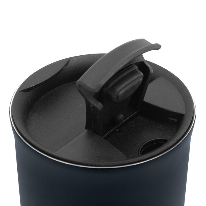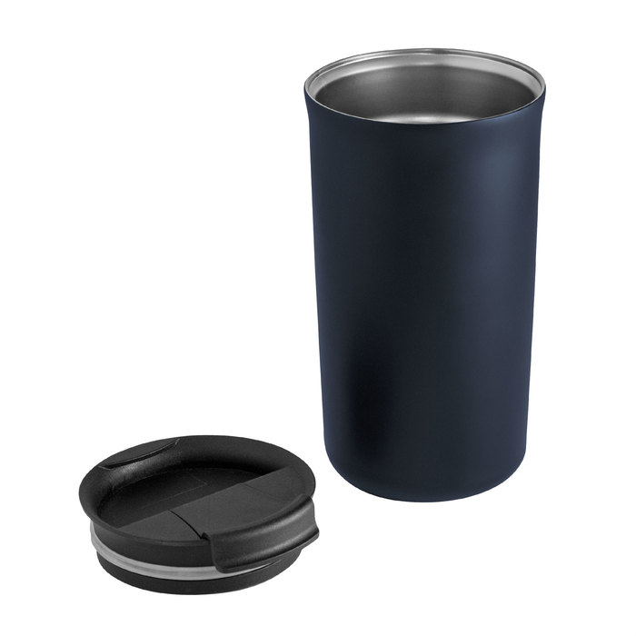 Mug térmico doble pared sellado al vacio. Aislamiento térmico. Tecnología vacuum. Interior en acero 304 y exterior en acero 201 con acabado mate. Tapa de polipropileno y anillo de silicona antivuelco. Base antideslizante con almohadilla de EVA color negro. Mantiene hasta 12 hs la temperatura de las bebidas calientes y 24 hs de las bebidas frías.